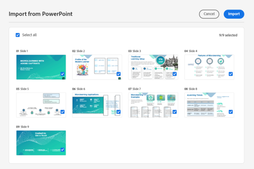 • Add more slides later to an imported Adobe Captivate PowerPoint project