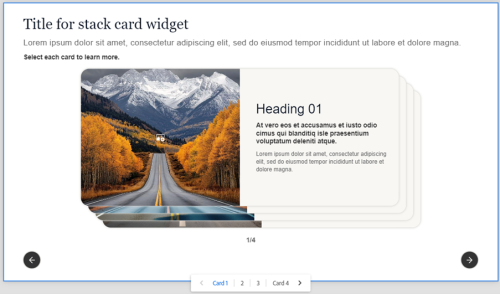 If you prefer a more experimental style, the Stack Card widget is a great addition. The Stack Card widget allows you to present content as a set of neat, layered cards that students can move through one step at a time. With a simple click or tap, each card snaps into focus, making it a lightweight, distraction-free experience that works best on mobile devices.